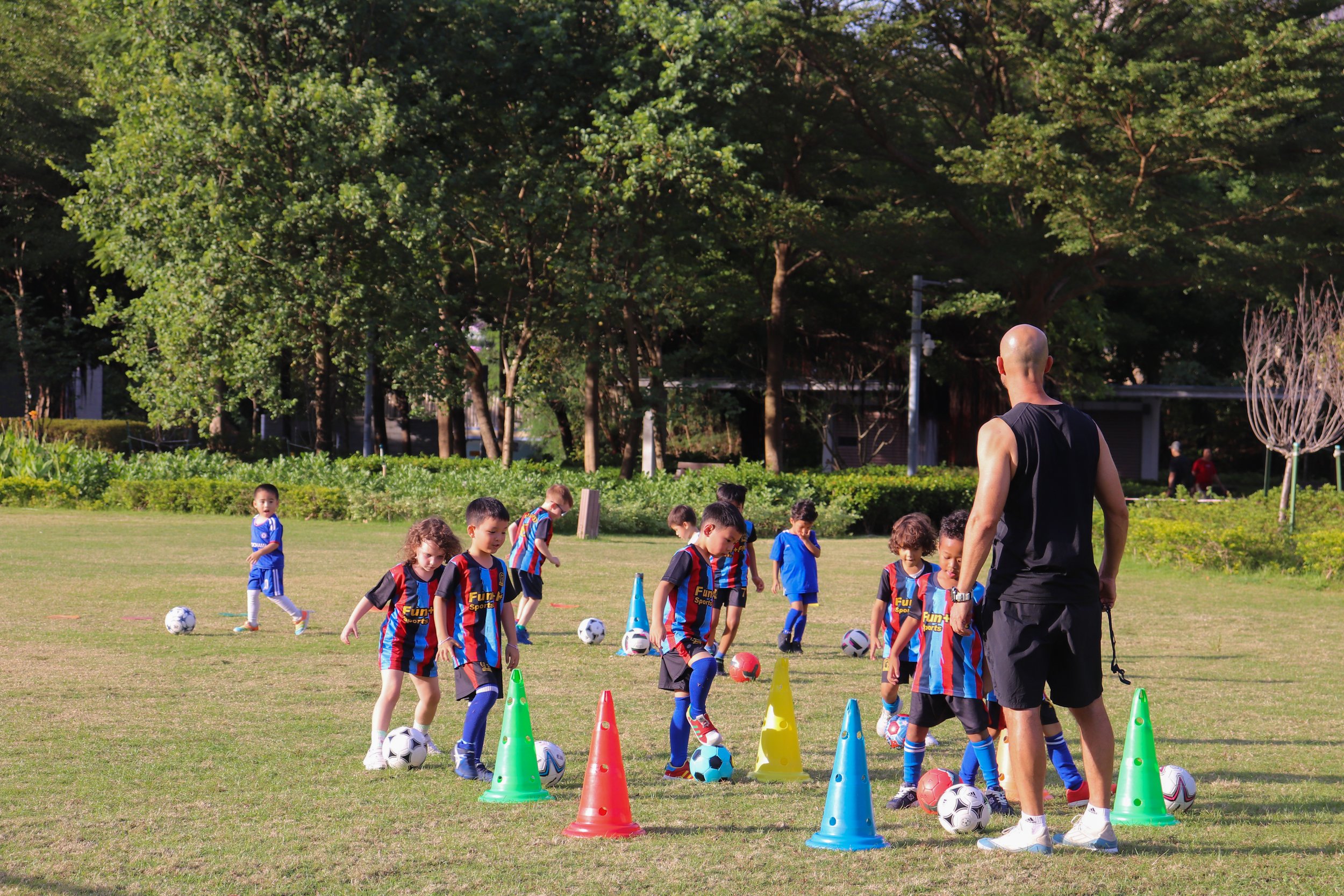 In the Blue Class, children develop a foundation of social skills, and exercise using various body movements, while getting used to the ball and learning how to kick with confidence, essential football skills will begin to take shape: dribbling, changing direction, stopping the ball. See your child grow in confidence and being part of a team.